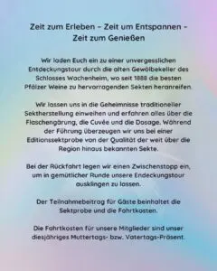 Natürlich darf auch der Genuss nicht fehlen: Bei einer Editionssektprobe überzeugen wir uns selbst von der Qualität der bekannten Pfälzer Sekte.