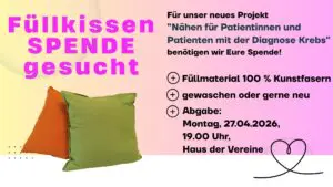 wir treffen uns am Montag, 27.04.2026, 19 Uhr, im Haus der Vereine zu unserem neuen Projekt „Nähen für Patientinnen und Patienten mit der Diagnose Krebs“.